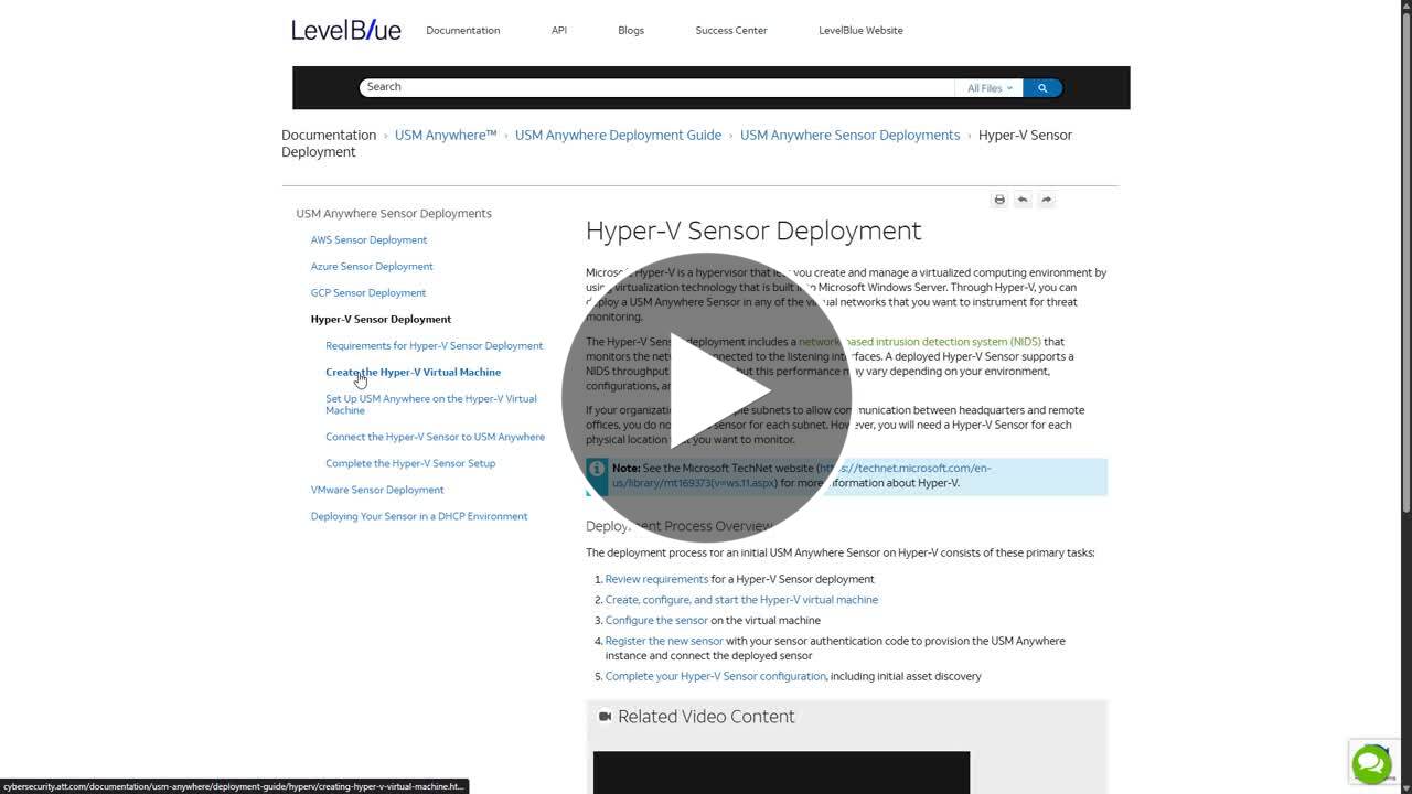 This video demonstrates the initial deployment and configuration of a Hyper-V sensor. It also demonstrates the sensor activation through the web UI.
