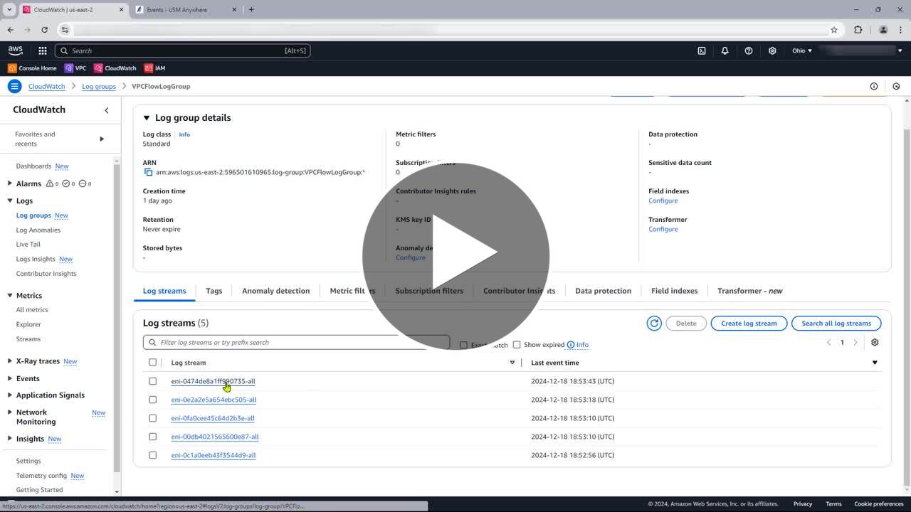 This video demonstrates how to configure AWS to capture VPC Flow Logs which represent network information from your environment. You will then see how USM Anywhere is configured to retrieve and analyse this information to create events.